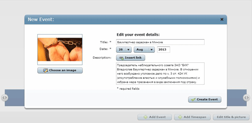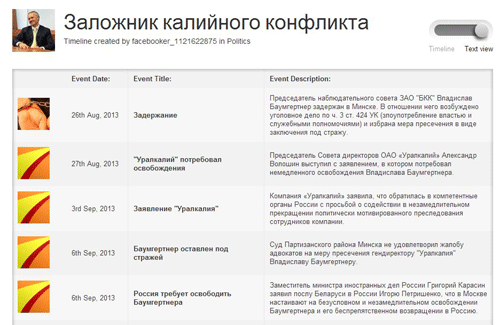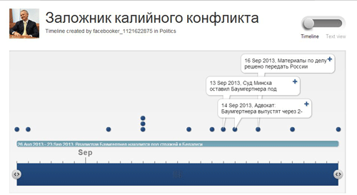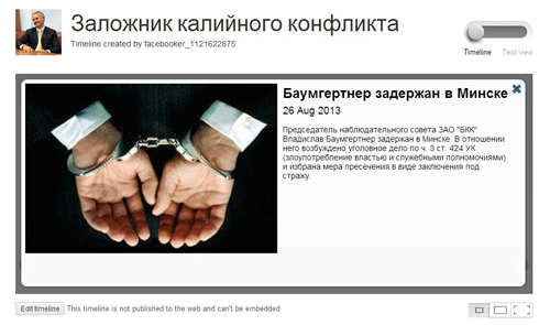 К сожалению, бесплатных приложений для создания хроники не так много. Одно из них – Timetoast, в котором мы и создадим пробную хронику на примере задержания гендиректора «Уралкалия» Владислава Баумгертнера в Беларуси.