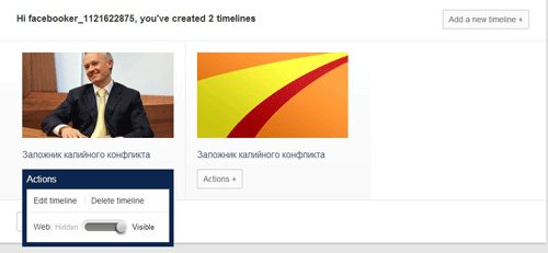 После этого попадаем в личный кабинет – Dashboard, где нажимаем кнопку Add a new timeline (создать новую хронику).