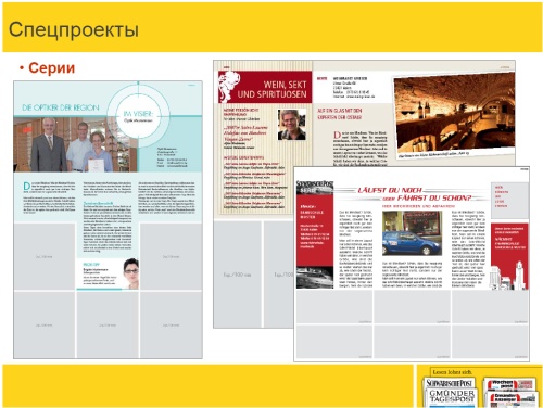 «ГЛЯНЦЕВОЕ ПРИЛОЖЕНИЕ К ГАЗЕТЕ» – это то, что делает издание Schwaebische Post (Aalen). В небольшом городке издание выходит один раз в год, анонсируется как «Главное событие года». Тираж – 10.000 экземпляров. Интересна система распространения: каждый рекламодатель предлагает журналу базу из контактов своих клиентов. В итоге журнал персонально получают не только клиенты ваших рекламодателей, но и клиенты конкурентов.