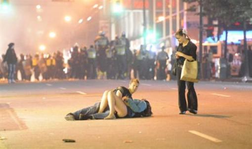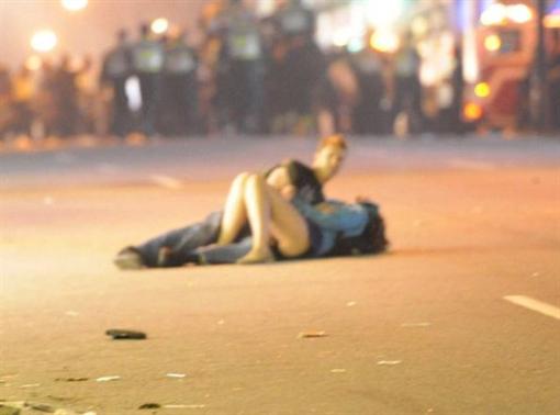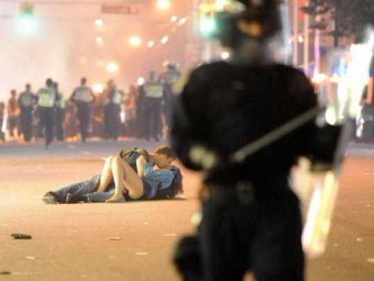 Наверняка, вы уже неоднократно видели этот снимок. 15 июня 2011 года после проигрыша команды «Vancouver Canucks» в финале Кубка Стэнли хоккейные фанаты устроили беспорядки на улицах Ванкувера. Вокруг были десятки разбитых витрин магазинов и сожженных автомобилей. Сотни полицейских были отправлены на место беспорядков, чтобы сдержать разъяренную толпу.