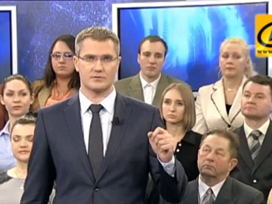 Вядоўца прапануе пачаць праграму наўпроставым уключэннем з Сімферопаля, дзе працуе здымачная група АНТ. “…Добры вечар, студыя!” — вітаецца з вялікага манітора карэспандэнт, што стаіць на фоне ахутанага змрокам горада, снавання машын з уключанымі фарамі. Кідаю позірк на свoй гадзіннік: 13.20.