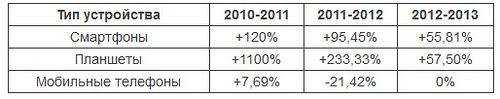 Во 2-м квартале 2013 года по всему миру было продано 210 миллионов мобильных телефонов и 225 миллионов смартфонов. То есть, в прошлом году смартфоны первые обошли по продажам мобильные.