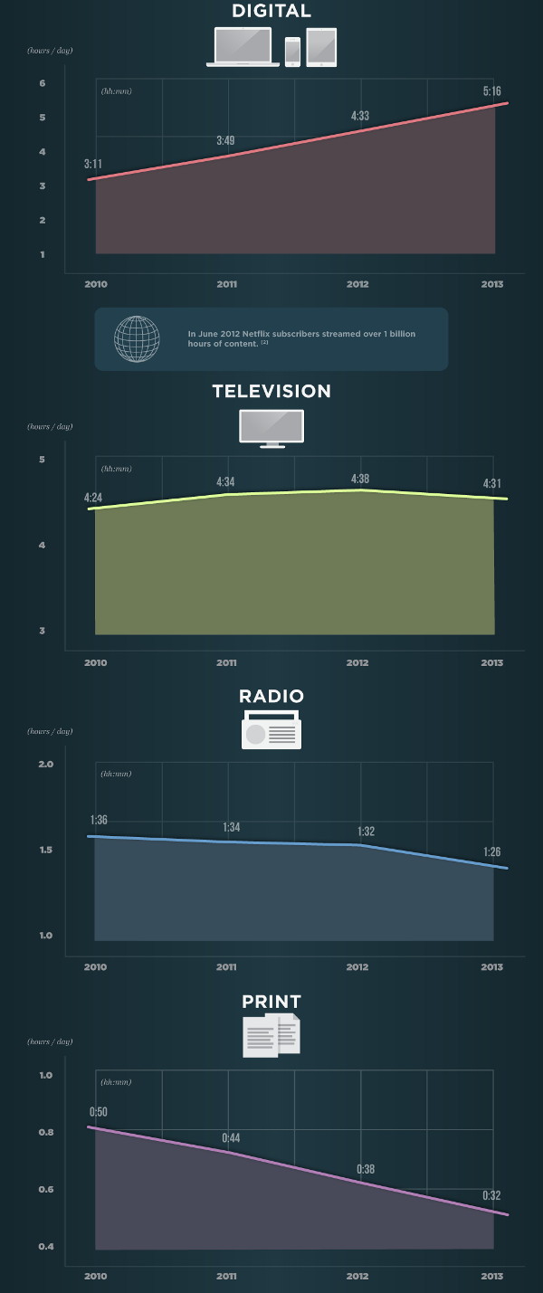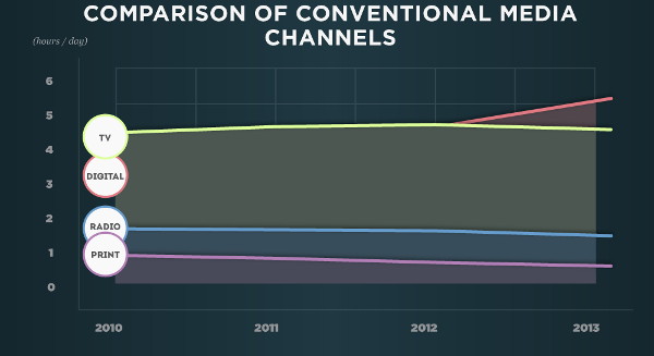 Об этой тенденции говорилось уже немало, но всерьез она проявилась только в прошлом году. Прошедший 2013-й ознаменовался коренным переломом в сфере СМИ — а именно: печатная пресса, радио и даже ТВ потеряли статус доминирующих средств массовой информации.