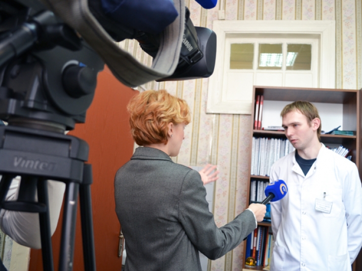 Мы встречаемся около здания телеканала в 10 утра, Надежда вызывает машину с оператором. Сегодня она впервые снимает с Тамером Маллаком. Пока мы едем на первую точку съёмки, в городской клинический наркологический диспансер, журналистка делится, что половину тем для сюжетов предлагает сама, вторую половину дает редактор и ведущая программы Наталья Бреус.