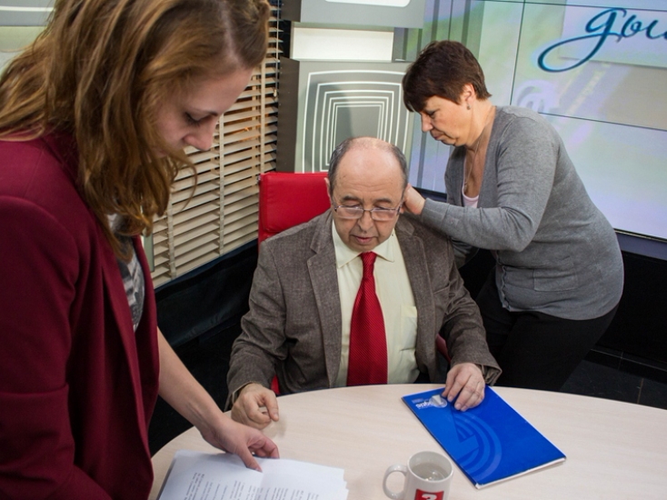 Навум Якаўлевіч Гальпяровіч — беларускі пісьменнік, журналіст, галоўны дырэктар міжнароднага вяшчання Беларускага радыё. Mediakritika.by пабывала ў гасцях у Навума Якаўлевіча ў доме Беларускага радыё па адрасе Чырвоная, 4, а таксама на запісу праграмы «Дыя@блог. Пра мову».