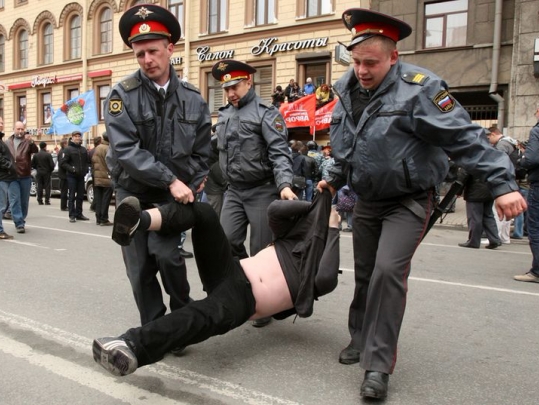 Потом таких задержанных до вечера держат в отделении милиции, записывают паспортные данные, и чаще всего отпускают. Или назначают дату суда за нарушение общественного порядка и там выписывают штраф».