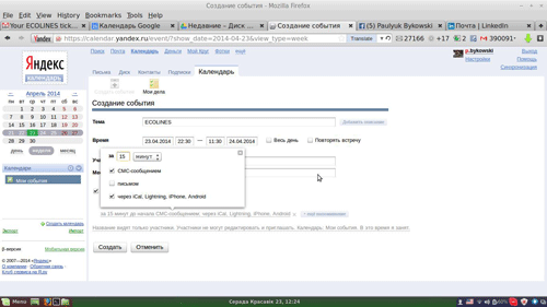 Создавать события и в Google, и в Яндекс не сложно, процесс интуитивно понятен. Преимущество первого сервиса - можно планировать начало и завершение события в разных часовых поясах, почта Gmail очень распространена и поэтому удобно приглашать гостей на своей мероприятие - ненавязчиво напоминать о встрече. Можно выбрать напоминание с помощью SMS, сообщение на почту или в виде всплывающего окна.