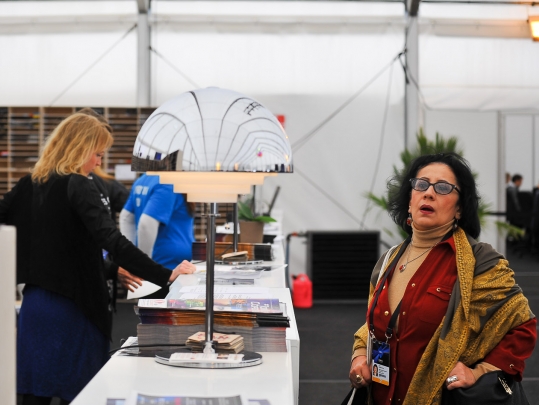 В целом было четыре больших зоны и пятая на улице – курилка. Первая большая зона – «мини-почта» и зона отдыха. Там были стеллажи, где делегации стран оставляли свои материалы для прессы (буклеты, диски, сувениры и т.д.).В зоне отдыха было много диванчиков, мониторы и качели. И там же в углу была зона голосования, где журналисты делали ставки на победителя.