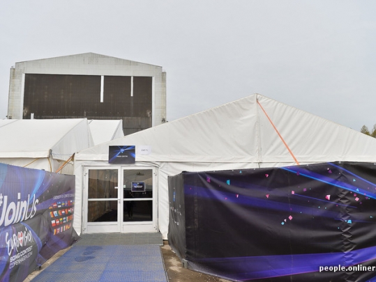 Сам «Остров Евровидения» - это бывшие корабельные верфи. Он, и правда, находится на острове. По идее, туда можно было добраться на речном трамвайчике, но он почему-то не ходил. На самом острове порядка не было совершенно: высокие кусты, грязь под ногами, серые здания, брошенные автомобили, все проходы огорожены металлическими стойками или перевязаны запрещающей лентой. К самой концертной площадке не было даже асфальтовой дорожки, его укладывали за неделю до первого полуфинала. До аккредитационного центра от остановки нужно было идти еще метров 800. Растяжки-указатели на английском, куда идти, были.