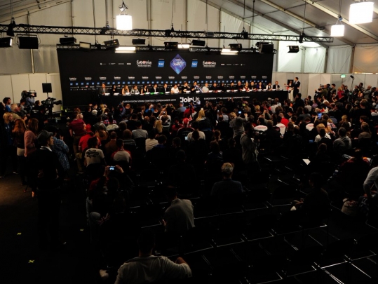 Еще одна зона – зал для пресс-конференций. Он вмещал около 600-650 человек. Для фотографов в ней было две зоны – одна с верхней точки, откуда виден весь зал; вторая – стена с растяжкой Евровидения, где артистов можно было снимать в полный рост. Доступ на пресс-конференции был ограничен: после полуфиналов допускали 500 человек только тех стран, которые прошли в финал. После финала доступ был у 670 человек: международных СМИ, членов делегаций всех стран и журналистов страны-победительницы. Но все пресс-конференции можно было видеть онлайн из рабочей зоны на мониторах.