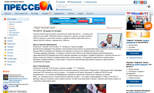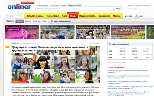 Тематика информационного наполнения Онлайнера в эти три недели особо не выделялась от «внечемпионатских» дней. Почти каждый день, конечно, были новости, фоторепортажи и опросы на хоккейную тематику. Но тема девушек на ЧМ-2014, что ни говори, была хорошо раскрыта. Так же любопытно было почитать обзор  10 итогов главного чемпионата в истории Беларуси. В нем журналисты подытожили жизнь столицы во время чемпионата в целом, а не только спортивные достижения.