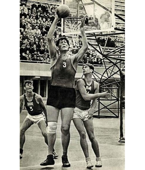 Организация World Press Photo была основана в 1955 году, и буквально в 1956 Сергей Преображенский, фотограф ИТАР ТАСС, занял первое место в номинации «Спорт» за фотографию «Игра в баскетбол». На снимке запечатлен мастер спорта СССР Увайс Ахтаев. Этого игрока называли “великаном советского баскетбола” за его рост, составляющий 2 метра 36 см, и вес в 160-200 кг. Увайс Ахтаев перестал играть в баскетбол в 1957 году после обнаружения у него сахарного диабета.