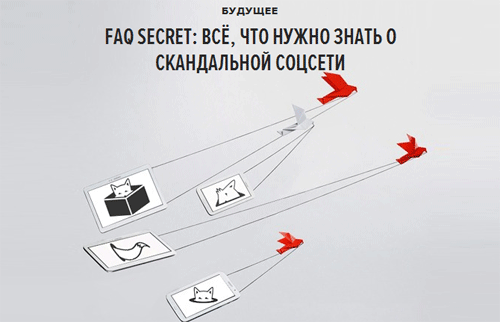 На прошлой неделе российский интернет взорвало появление нового сервиса Secret. Лента приложения в этой анонимной социальной сети составляется на основе списков контактов, включая и друзей друзей, а также по принципу геолокации. Secret сделан так, что стать опознанным в нем почти невозможно. В России приложение моментально подхватили журналисты и работники IT-индустрии: наряду со сплетнями и слухами в ленте Secret появлялись и настоящие инсайды из индустрии.