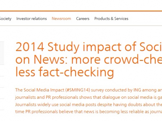 80% опрошенных журналистов сначала публикуют материалы, и только потом проверяют изложенные в них факты. К такому выводу пришли авторы исследования, проведенного голландской компанией ING. «Сначала публиковать, проверять при необходимости - это требование времени», - говорится в отчете. Трое из пяти журналистов считают, что в эпоху социальных сетей представители этой профессии стали менее скованны правилами, принятыми в традиционных изданиях.