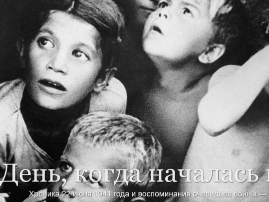 Газета «Коммерсант» выпустила спецпроект, посвященный первому дню Великой отечественной войны. Хроника дня, воспоминания очевидцев, вырезки из газет, архивные фотографии, военные карты, видео, звук  и технология параллакс.