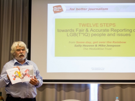 Два года 'The MediaWise Trust' работали с ЛГБТ тематикой и почти доделали справочник “Когда-нибудь перейти через радугу” о том, как журналистам следует освещать тему ЛГБТ. Издание, котрое создавалось при участии более 20 организаций ЛГБТ Великобритании, пока не вышло в свет. Сейчас справочник, включающий в себя «12 вопросов и шагов навстречу справедливости и точности в письме о ЛГБТ», проходит редактуру. Вполне возможно, что некоторые из «12 шагов...», презентованные Майком Джемпсоном, будут в дальнейшем изменены. Несмотря на это руководитель 'The MediaWise Trust' дал “Mediakritika” разрешение на их публикацию.