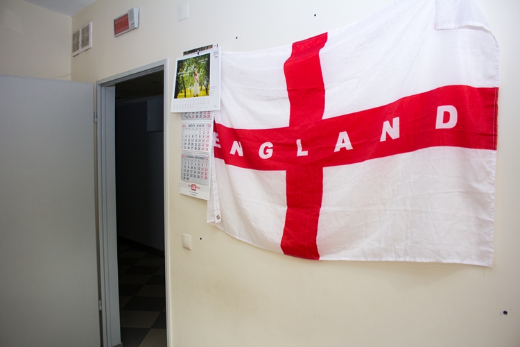 Флаг Англии подарил английский футбольный писатель Дуги Бримсон, который у нас известен, в основном, только фанатам. Широкой публике Бримсон известен как автор сценария фильма «Хулиганы Зеленой улицы» (англ. - Hooligans). Сотрудники издания привозили писателя в Беларусь на отборочный матч чемпионата мира-2010 'Беларусь-Англия'.
