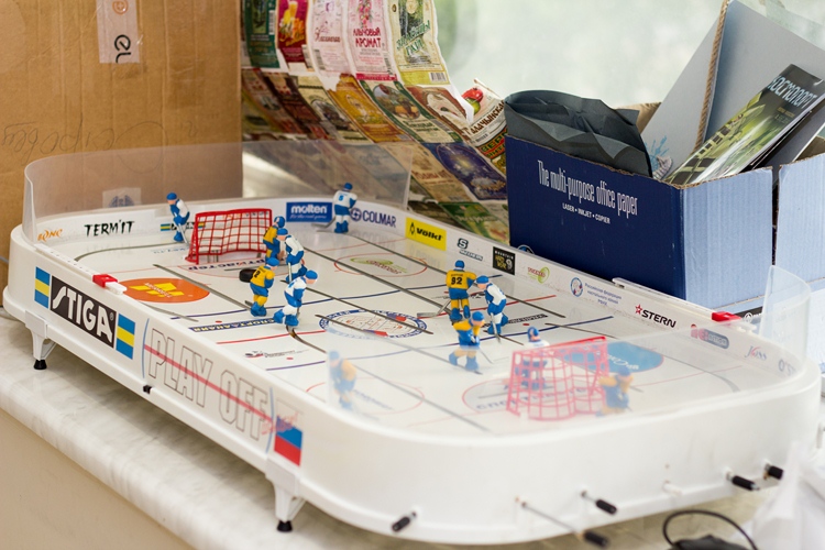 В настольный хоккей постоянно играют главный редактор и дизайнер журнала. Говорят, во время игры расслабляются глаза