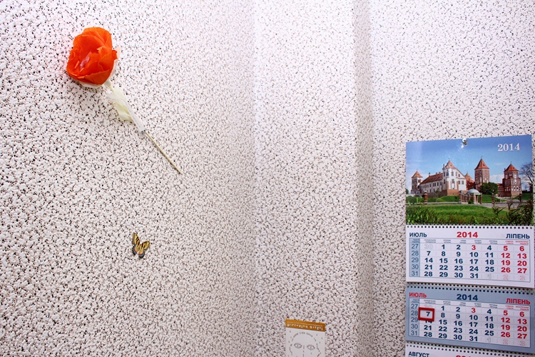 А над списком скотчем к стене прикреплена искусственная роза. «Наша журналистка Настя была на пресс-конференции. Принесла оттуда искусственный цветок. Говорит, внутри была конфетка», - рассказывает Кристина. Сергей Сацук в шутку добавляет: «Парни мало цветов дарят, так хоть с прессух приносят».
