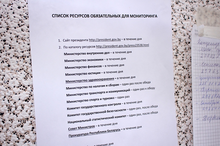 Слева от стола Кристины на стену прикреплен список ресурсов обязательных для мониторинга.