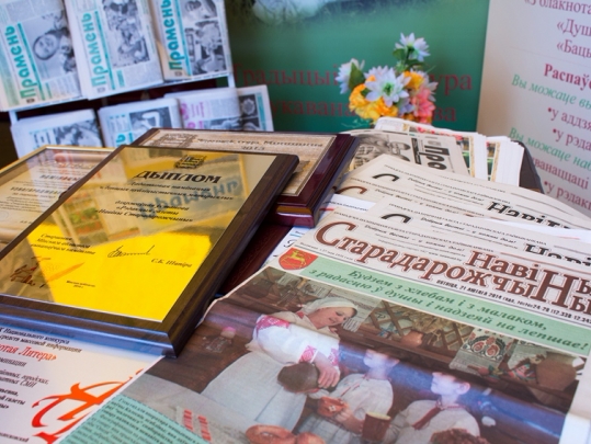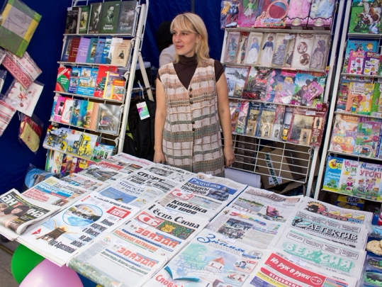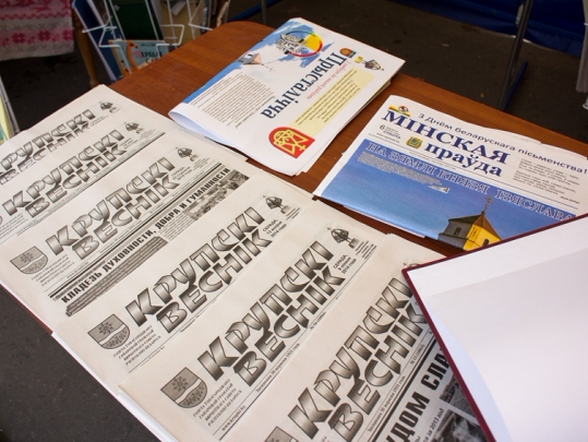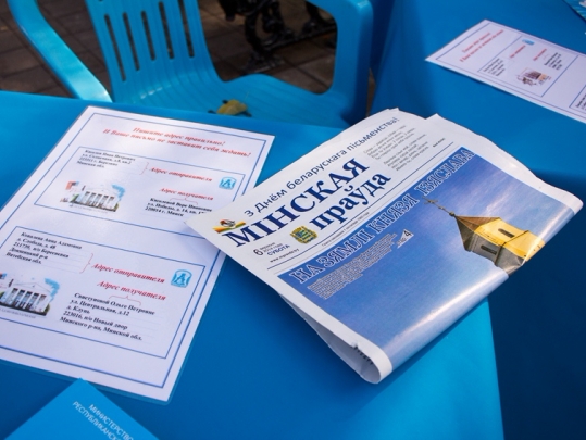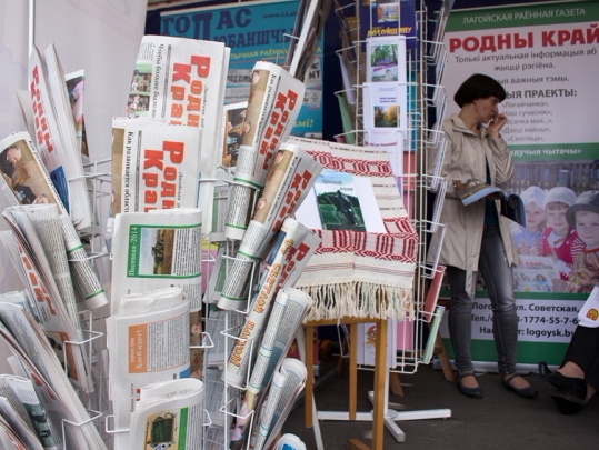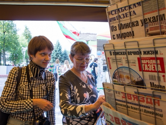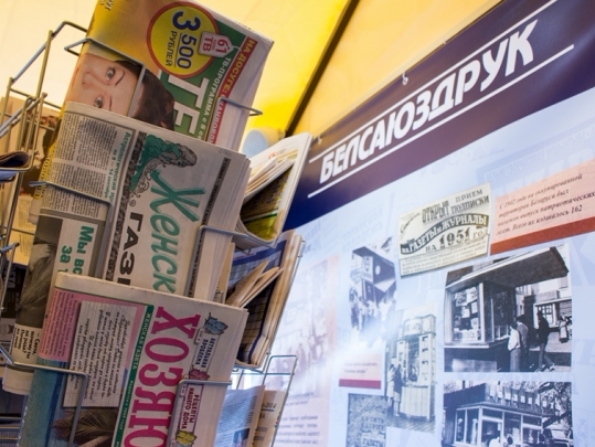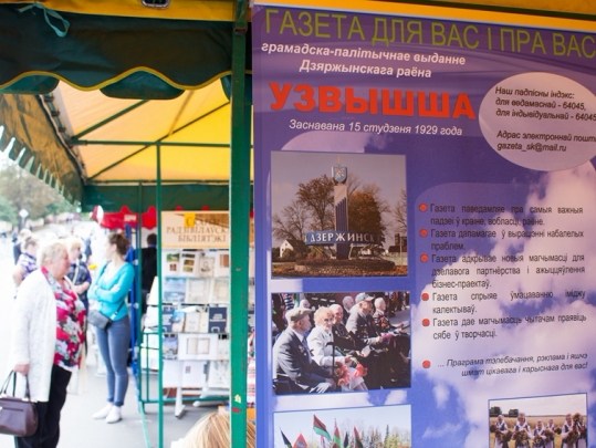 Неподалеку, в навесе «Белсоюзпечати», можно было увидеть различные СМИ (практически повторяющие палатку «Миноблсоюзпечати»).