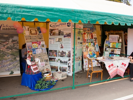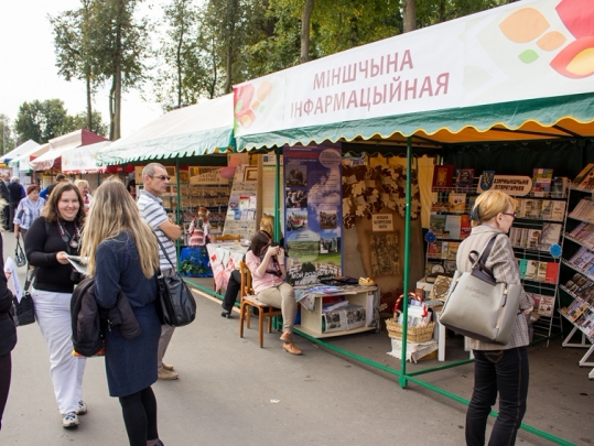 Посетители, пришедшие на праздник со стороны Костёла Рождества Пресвятой Девы Марии, сразу видели перед собой длинный ряд палаток, поставленных вплотную одна к одной, под общим названием «Міншчына інфармацыйная». Здесь можно было лицезреть различные «районки» Минской области, а часто и получить в подарок фирменные блокнотики-календарики. На многих стендах были выставлены различные дипломы и прочие профессиональные награды, которые получили конкретные СМИ.