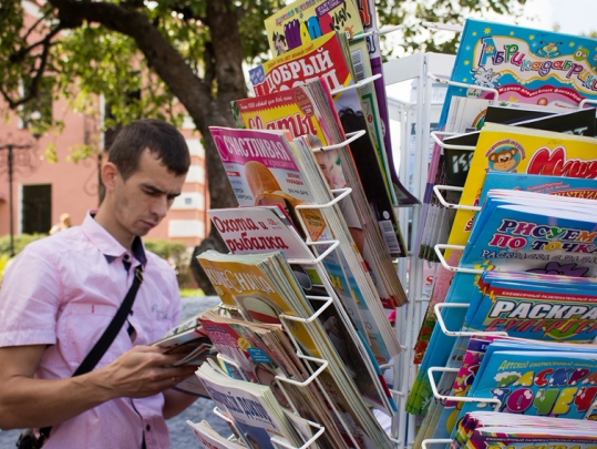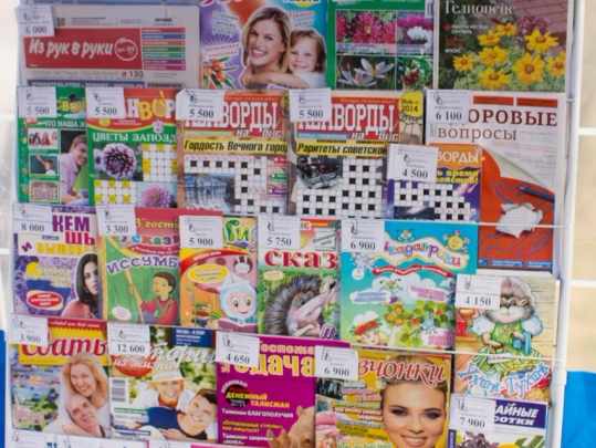 По двум сторонам от палатки Миноблсоюзпечати крутящиеся стеллажи. Здесь издания самые разные – от журналов «Планета» и «Охота и рыбалка» до «Счастливая и красивая» и разного рода изданий для детей. Внутри палатки обнаруживаем «СБ. Беларусь сегодня», «Рэспубліку», «Народную газету», «Звязду», «Антенну», «Знамя юности», «Зорьку», «Коммунист Беларуси», «Детективную газету XXL» и другие газеты.