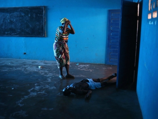 Серию фотографий Джона Мура (Getty Images) о том, как в Либерии пытаются остановить распространение лихорадки Эбола, в своем блоге 'Lens' опубликовала The New York Times 19 августа. На фото женщина стоит над мужем после того, как последний зашатался и упал в бессознательном состоянии, выйдя из палаты школы, переоборудованной под медицинский центр.