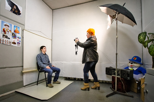 Я неяк перасякаўся з праграмістам, які рабіў мне сайт. І так папала сустрэцца ў атэлье, куды ён пайшоў рабіць фатаграфію на візу. А я быў побач і, думаю, дай здыму гэтую сітуацыю. Там усе гэтыя ліхтары, дарк-рум... Гэта было зімою 2012 года. І пасля я забыўся на гэтую карцінку. А дзесьці вясною 2013 года ўзгадаў пра яе і зразумеў, што можна зрабіць серыю з гэтых дарк-румаў, калі беларусы здымаюцца на візы. Беларусы першыя ў свеце па колькасці выданых шэнгенскіх віз. Гэта гісторыя пра камунікацыі, штосці такое тонкае.