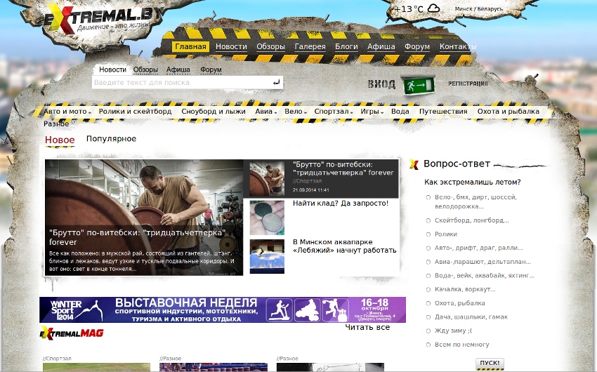 Что же касается особенностей нашего проекта и его уникальности по сравнению с конкурентами… Об особенностях мы уже сказали. А конкурентов мы не видим. Честно. Мы пришли фактически на пустое поле. Существовавший ранее прекрасный ресурс, посвященный белорусскому экстриму, уже давно не обновляется – жив лишь форум.