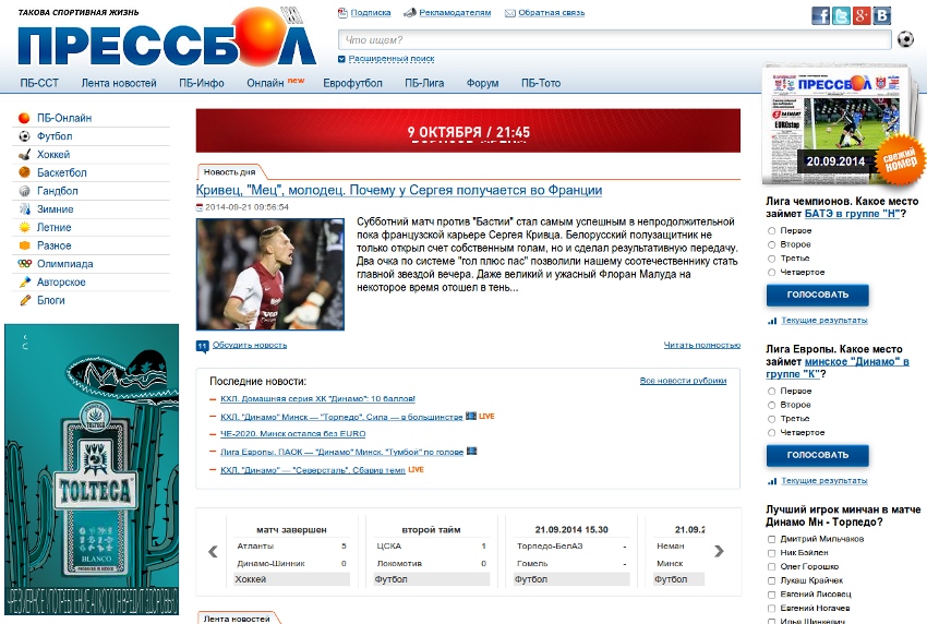 Должен сказать, интернет-версия  «ПБ» в нынешнем виде давно и категорична нас не устраивает, ибо морально устарела. В настоящее время мы активно работаем над производством новой модели сайта, процесс в последнее время движется активно, местами весело – и в скором времени, надеюсь, сетевой читатель «Прессбола» это оценит, и оценит высоко.