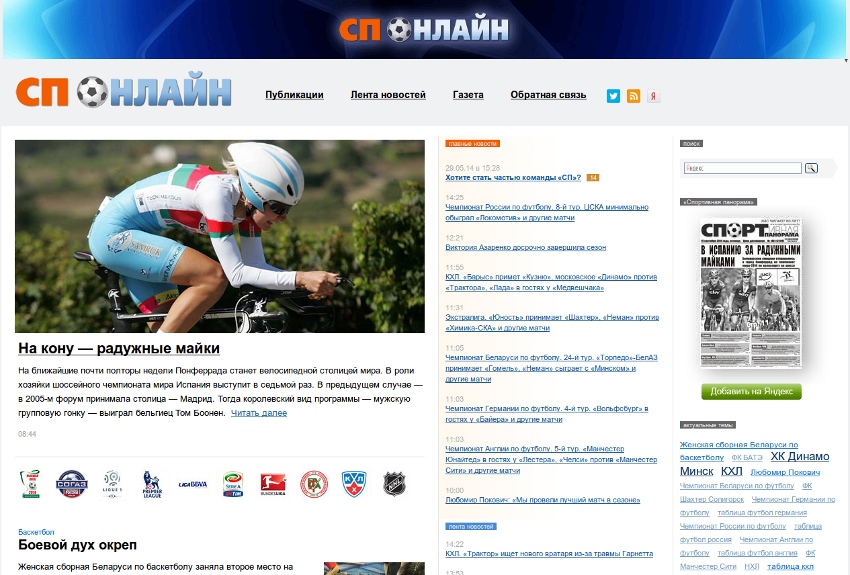 «Месячная аудитория проекта по Google Analytics – 300 тысяч пользователей. В пики, как, например, чемпионат мира по хоккею в Минске, эти цифры выше. Пользователи в возрасте 19-35 составляют 66% нашей аудитории. Понятно, что в основном это мужчины. Их на сайте около 70-75 процентов. Мы делаем ставку на молодую аудиторию, которая черпает информацию из интернета. Много работаем с социальными сетями, используем их как еще один способ доставки информации нашим пользователям.
