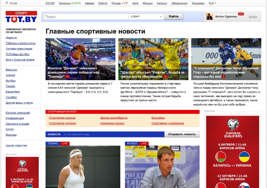 Наш ресурс является частью большого портала TUT.BY, который посещают отнюдь не только спортивные болельщики, поэтому наша задача – не дать результаты со всех стадионов мира, а подробнее рассказать о событиях и героях, которые интересуют широкий круг читателей.