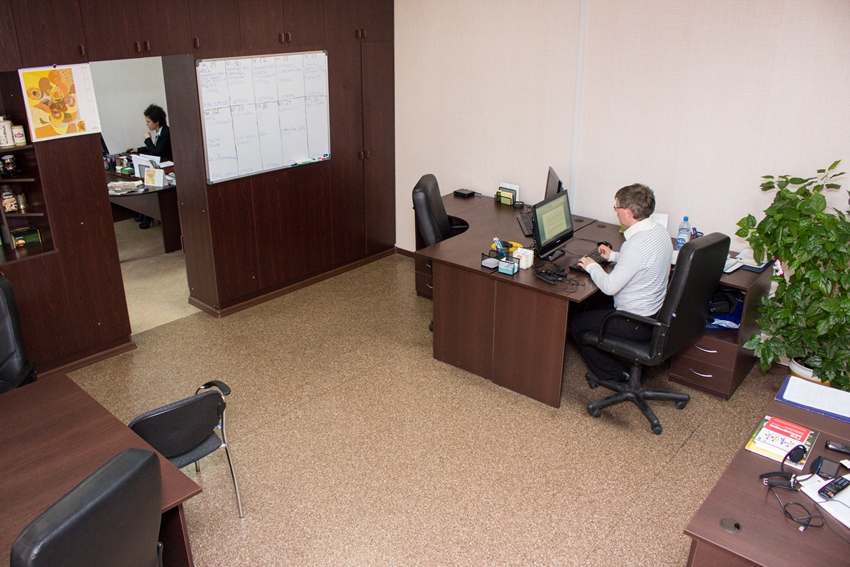 Ирина Юзвак, директор и соучредитель компании, считает, что агентству «Бизнес-новости» очень повезло с офисом: «Это центр города. И это здание с государственными расценками — аренда обходится нам чуть более $10 за квадратный метр. Мы здесь сделали небольшой косметический ремонт - поклеили обои, повесили жалюзи и постелили новый линолеум».