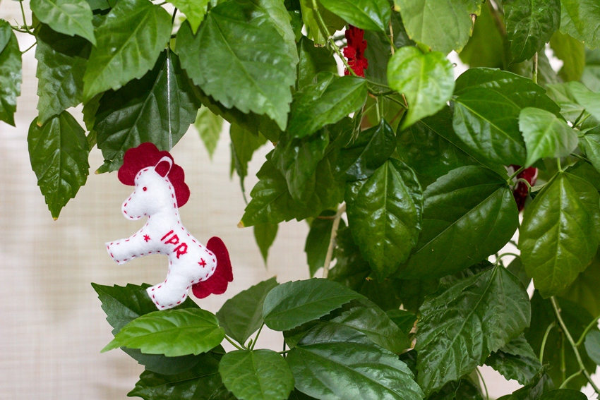 За спиной Андрея стоит дерево, на котором развешены игрушки. Это подарок к Новому году от партнеров и друзей Информационно-аналитического агентства — Института PR. Но игрушки так замечательно смотрятся на дереве, что коллектив решил их и не снимать.