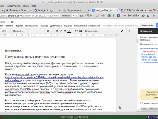 Когда мы в прошлый раз говорили о текстовых редакторах, то речь шла о десктопных приложениях. Сегодня поговорим об редакторах, которые используют интернет-браузер, работают онлайн и не требуют инсталляции на компьютер.