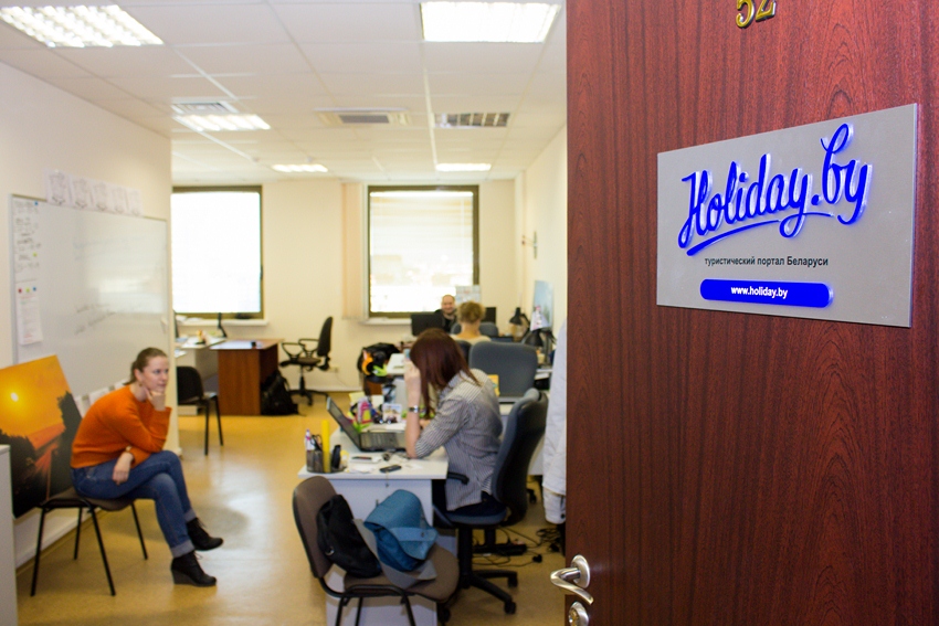 В одном офисе работают главный редактор, программист и журналисты портала. В соседнем помещении, менеджеры Holiday.by. Директор Андрей Барашко перемещается между офисами.