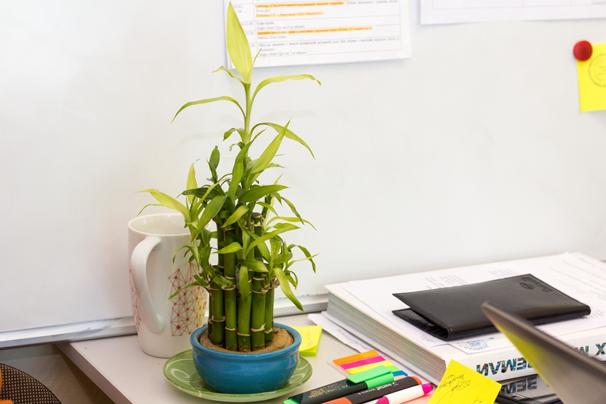 На столе Аси настоящий бамбук — подарок от любимой подруги, известного белорусского журналиста и художника Нади Буки. «Когда я в командировках, бамбук любезно поливает программист Роман», — рассказала Ася.