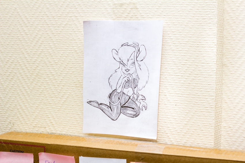 На бутылке вина (выполняющей скорее функцию декора, потому что в офисе «сухой закон») сувенир со страусиной фермы, которая находится в деревне Козище под Кобрином. Подпирает бутылку лось, привезенный Асей из Швеции. «У нас с фотографом Анной Ивановой была командировка по Вэстманланду. Этих лосей двое — они обнимались. Второй находится в другом офисе. Если лосям будет скучно, они будут соединяться, и у нас будет много маленьких лосят», — рассказывает Ася Поплавская.