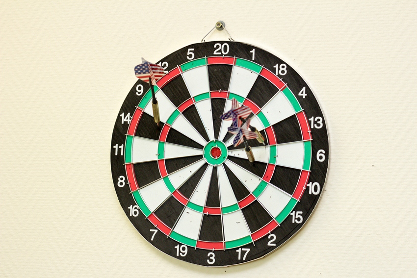 Дартс на стене также принадлежит Роману. Его подарили программисту на День рождения.