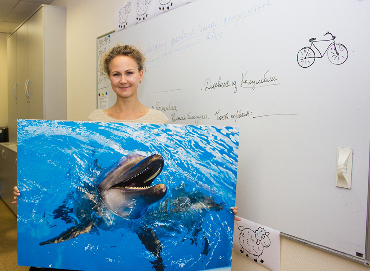 Ирина показывает фотографию Анны Ивановой, сделанную в минском дельфинарии «Немо». Девушки в середине лета этого года делали репортаж «Проверенно на себе: Тест Holiday.by из дельфинария». Ирина испытала на себе дайвинг с дельфинами.
