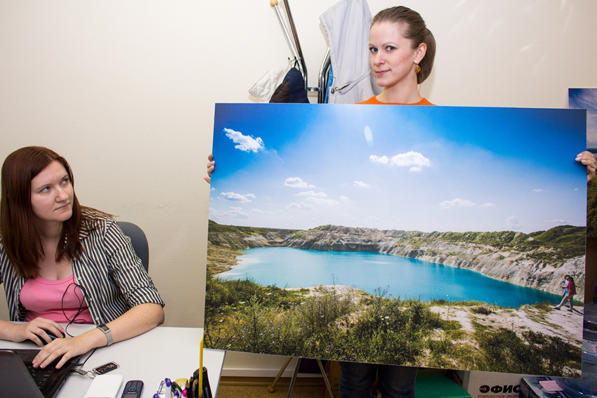 Сначала заходим в первый офис. Он имеет форму обратной буквы «Г». Все помещение украшено фотографиями Анны Ивановой, которые она делала во время командировок от Holiday.by.