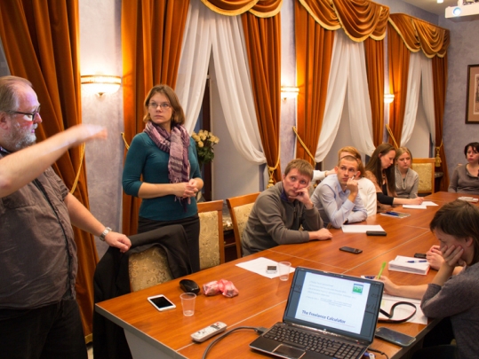 Журналисты-фрилансеры, эксперты группы по фрилансу Европейской федерации журналистов Торальф Сандокер из Норвегии и Аса Ольссон из Швеции провели тренинг для белоруских коллег «Как заработать на фрилансе? Калькулятор журналиста-фрилансера».