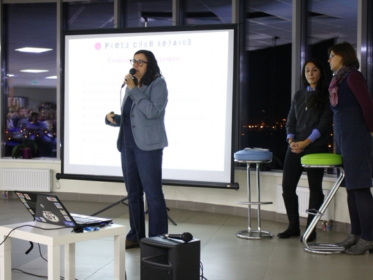 В самом начале встречи Юлия Слуцкая, председатель "Пресс-клуба Беларусь", рассказала о клубе: «Пресс-клуб Беларусь был создан в 2011 году. Основателями стали редакторы, заместители редакторов и журналисты независимых медиа Беларуси – более 30 человек подписали акт об основании Пресс-клуба. Вообще, это международное движение. Более 40 пресс-клубов существуют во всем мире. Генеральный секретариат находится в Варшаве, но он кочует. Главная цель – расширение возможностей для журналистов.
