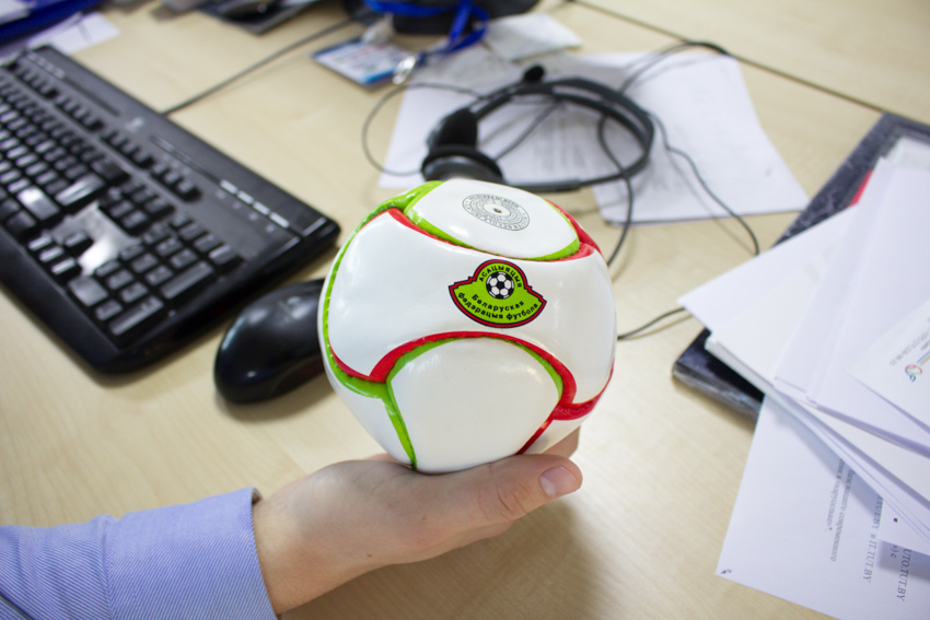 Белорусская федерация футбола подарила мяч во время завершения предыдущего сезона Чемпионата Беларуси. Это маленькая копия футбольного мяча, его даже можно надуть.