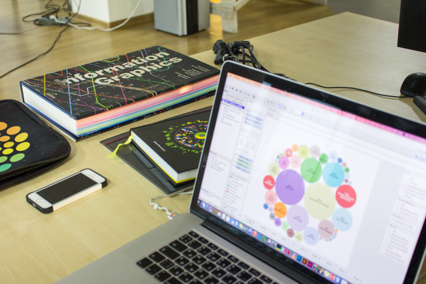 Стол Вадима Шмыгова, который рисует инфографику для портала.