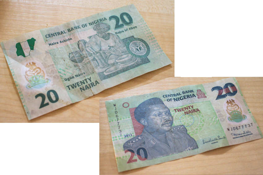 По правую руку от Михаила лежат 20 нигерийских найра, что составляет примерно 1300 белорусских рублей.