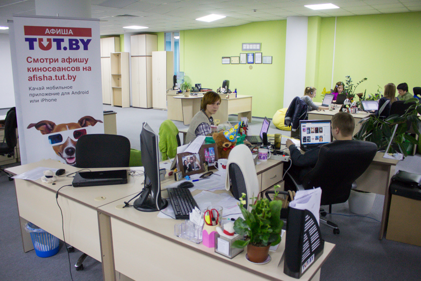 Последняя остановка для нашего репортажа — менеджерская, большое помещение на восьмом этаже. Здесь находятся топ-менеджмент TUT.BY, отдел маркетинга, менеджеры проектов, среди которых...