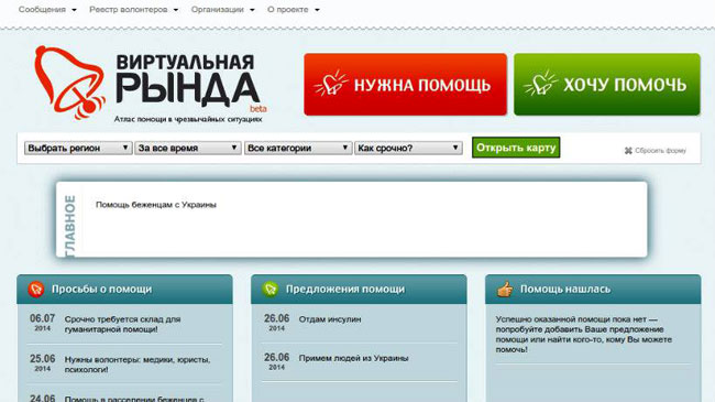 «Когда в России несколько лет назад были пожары, группа активистов сделала сервис «Карта пожаров» - то была открытая платформа, которая позволяла людям, которые хотят помочь пострадавшим, оказать эту помощь. Этот проект получил большое развитие — он переформатировался в проект «Виртуальная рында», который существует до сих пор. Новый проект не ограничивается только пожарами, но и оказывает помощь всем тем, кто оказывается в беде».