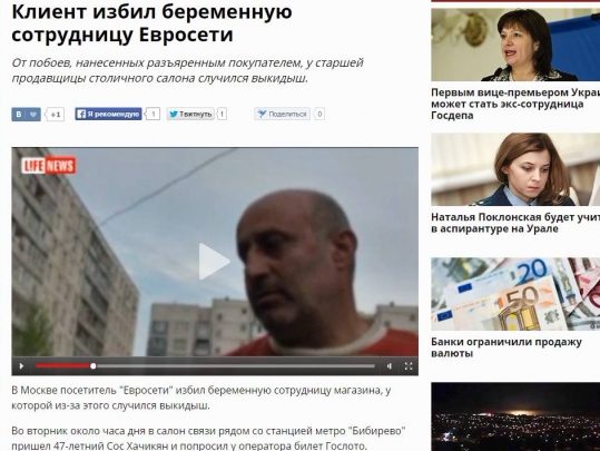 На сайте Lifenews.ru оперативно появилась заметка, рассказывавшая о том, как зверь-таксист-армянин так избил беременную русскую сотрудницу "Евросети", что у нее случился выкидыш. В этой новости приведены якобы слова Олеси, которые "Лайфньюз", видимо, просто выдумал: «О том, что я жду ребенка, я узнала три дня назад. Это была моя первая беременность».